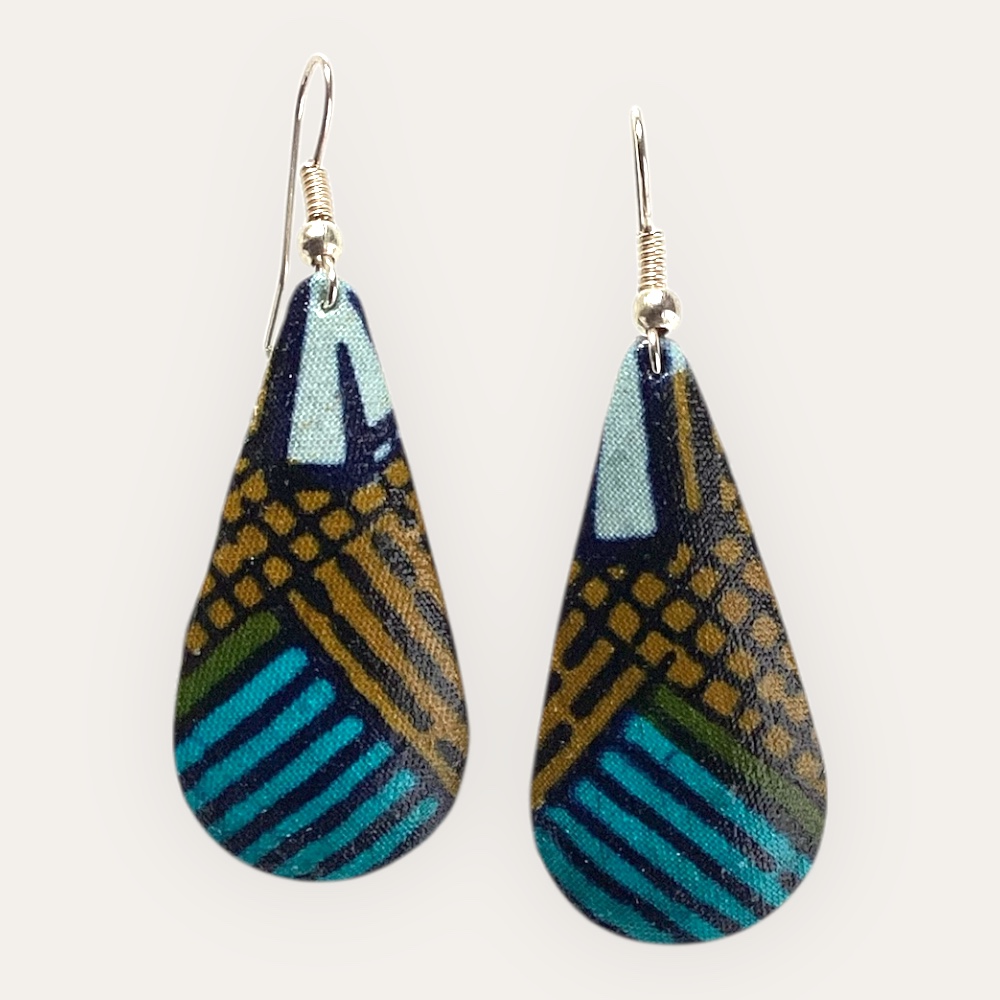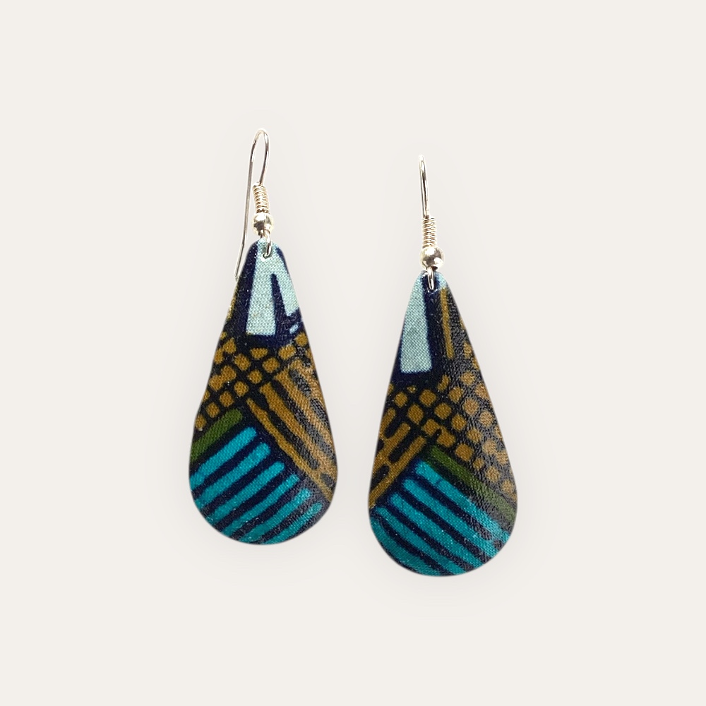 Les Boucles d’oreille Zoé sont confectionnées à la main avec des tissus vernis soigneusement sélectionnés.