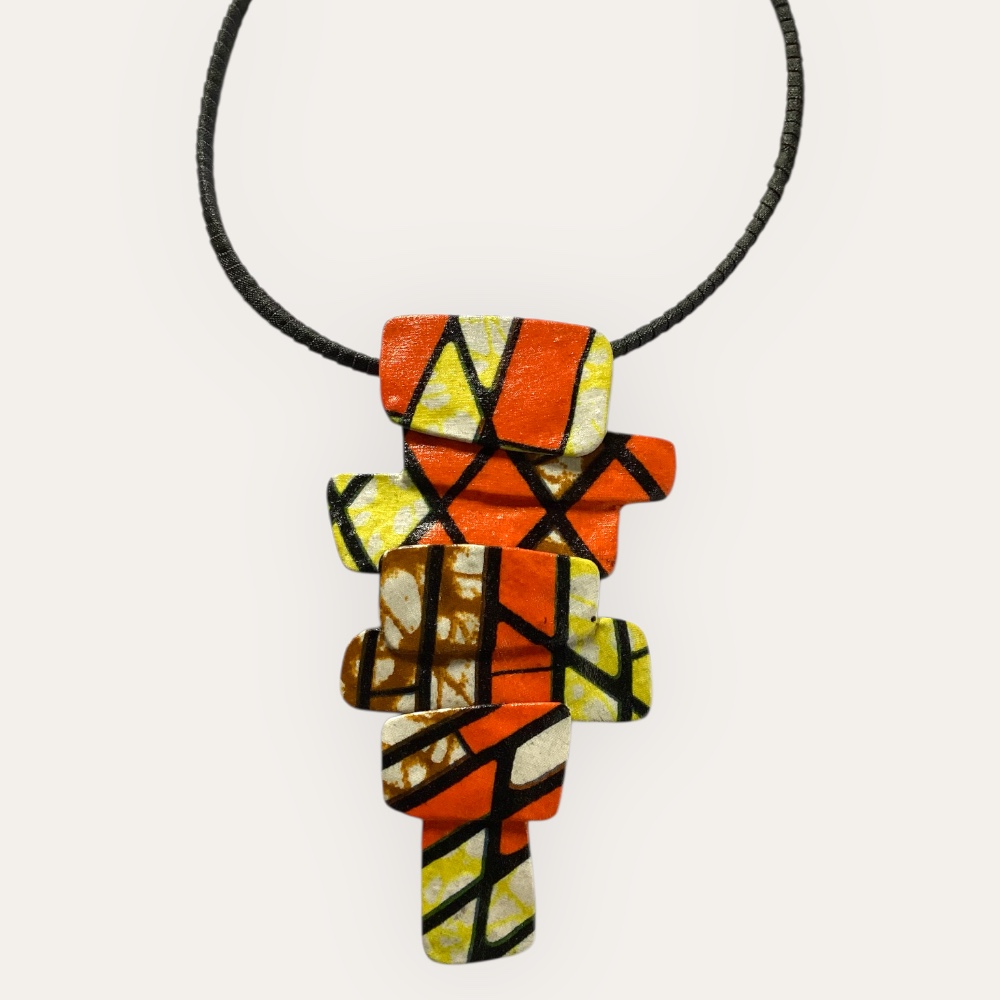 Sortez de votre zone de confort avec ce bijou de la collection ATHENA qui est l’alliance parfaite de la modernité et du design ancien. Collier confectionné avec du tissus ethnique.